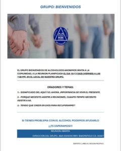 « All Events Planificada en el grupo BIENVENIDOS October 17 @ 7:00 pm - 9:00 pm Free « Planificada de Grupo Hay Una Solución XIII vo. Aniversario De Su Oficina intergrupal Del Condado De KERN » Add to calendar Google Calendar iCalendar Outlook 365 Outlook Live Details Date: October 17 Time: 7:00 pm - 9:00 pm Cost: Free